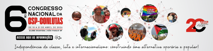 A CSP-Conlutas inicia o período de pré-congresso do 6º Congresso Nacional, programado para abril de 2026 em São Paulo, celebrando 20 anos de luta e independência de classe. O evento será um espaço decisivo para delegados discutirem políticas e ações da Central diante da conjuntura nacional e internacional, abordando temas como Venezuela, Palestina, Ucrânia, Sudão, Nigéria e precarização do trabalho. A organização do Congresso envolve uma Comissão responsável por coordenar o processo, além da formação de comissões para sistematização e combate a opressões. O pré-congresso é uma etapa crucial de mobilização e debate, reafirmando o compromisso da CSP-Conlutas com a democracia operária e a organização da classe trabalhadora.